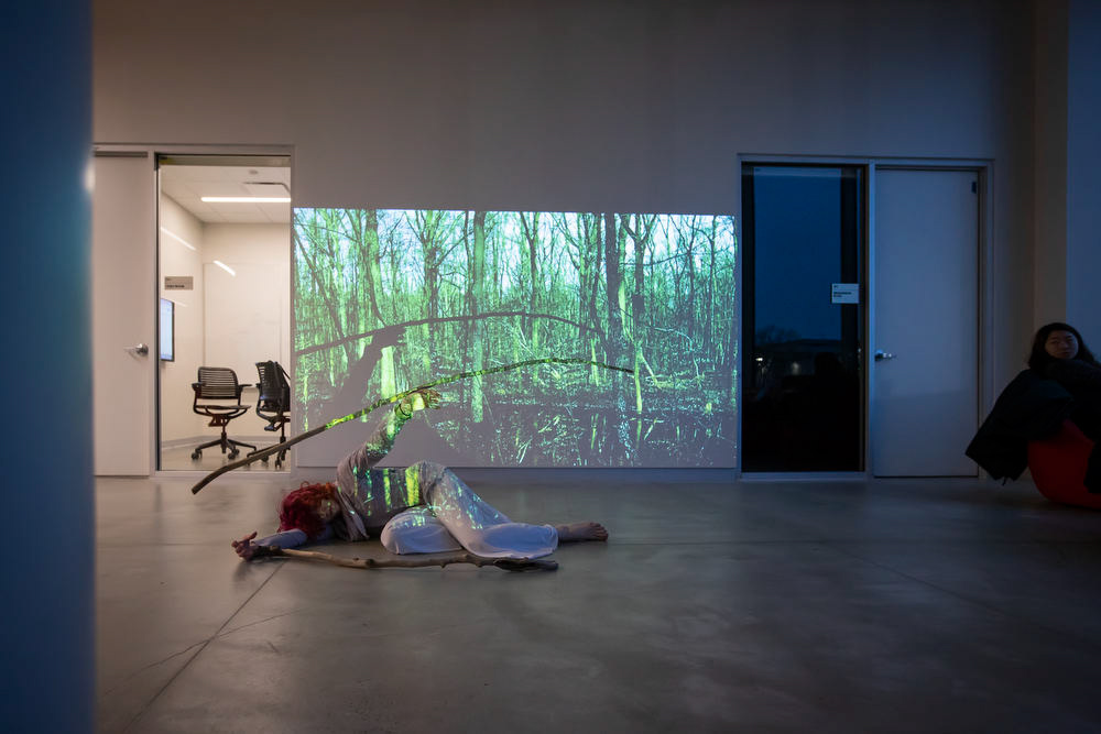 A durational improvised dance piece that interacts with the site of the library and incorporates natural elements of branches to connect the dancer back to the ecological world. All credit for the branch dancing is to Professor Merian Soto, who perfected and created this practice and shared it with the dancer.